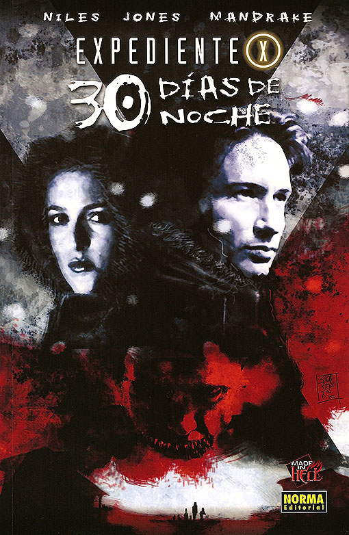 Blog Terrores – Acaba de llegar a las tiendas el cómic Expediente X – 30 días de noche (30 days of night / The X Files nºs 1 a 6 USA). Publicado por Norma Editorial dentro de su excelente sello Made in Hell (auténtico filón para el aficionado al terror en formato cómic) del que hace su número 115. Steve Niles y Adam Jones se encargan de los guiones mientras que Tom Mandrake hace lo propio con el dibujo. A continuación te ofrecemos la crítica, algunas portadas, imágenes del cómic, toda la información sobre sus autores (de los que existe poca en castellano – español por cierto) y sobre las obras que tratan la temática de 30 días de noche y Expediente X.