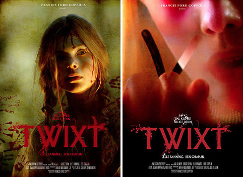 Blog Terrores – Francis Ford Coppola se reencuentra con el cine de terror en su próxima película Twixt que se podrá ver en el festival de cine de Toronto en septiembre de este año, su estreno en las salas de cine todavía no tiene fecha definitiva pero todo apunta que será en 2011. Os ofrecemos a continuación un pequeño avance, el tráiler, información sobre el reparto, imágenes y el enlace donde podéis votar vuestro póster preferido de Twixt entre 5 posibles. Val Kilmer y Elle Fanning destacan entre el reparto del film.