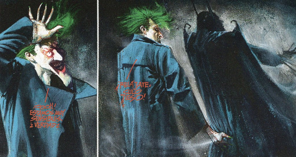 El Joker acaba siendo un espejo oscuro de nosotros mismos. «Se ve como el rey del caos, y al mundo como teatro del absurdo» dice Ruth Adams. Al final volvemos al viejo conflicto: el caos y la anarquía frente al orden (Batman). Desde luego el Joker es más libre que cualquiera de nosotros, no tiene límites morales pero su libertad interfiere con la de sus víctimas. Al mismo tiempo carece de todo sentido (concibe el mundo como un teatro del absurdo). Desde luego no se detiene ante lo políticamente correcto como se puede comprobar en su acoso sexual a Batman. Morrison acentúa la homosexualidad del Joker pero, como acabamos de ver, se trataría de un mero espejo inverso de la propia figura asexual de Batman. Es increíble pero, más de 3 décadas después de su publicación pienso que hoy en día sería imposible que una editorial como DC Cómics publicara una novela gráfica como ésta por su carácter políticamente incorrecto. Una cosa es reeditar la novela gráfica más vendida de todos los tiempos y otra publicar una obra nueva tan provocadora como esta. Las reacciones serían furibundas. Personalmente, cada vez encuentro más atractivas este tipo de obras por el aroma de libertad que desprenden, un auténtico valor en si mismo en la actualidad.