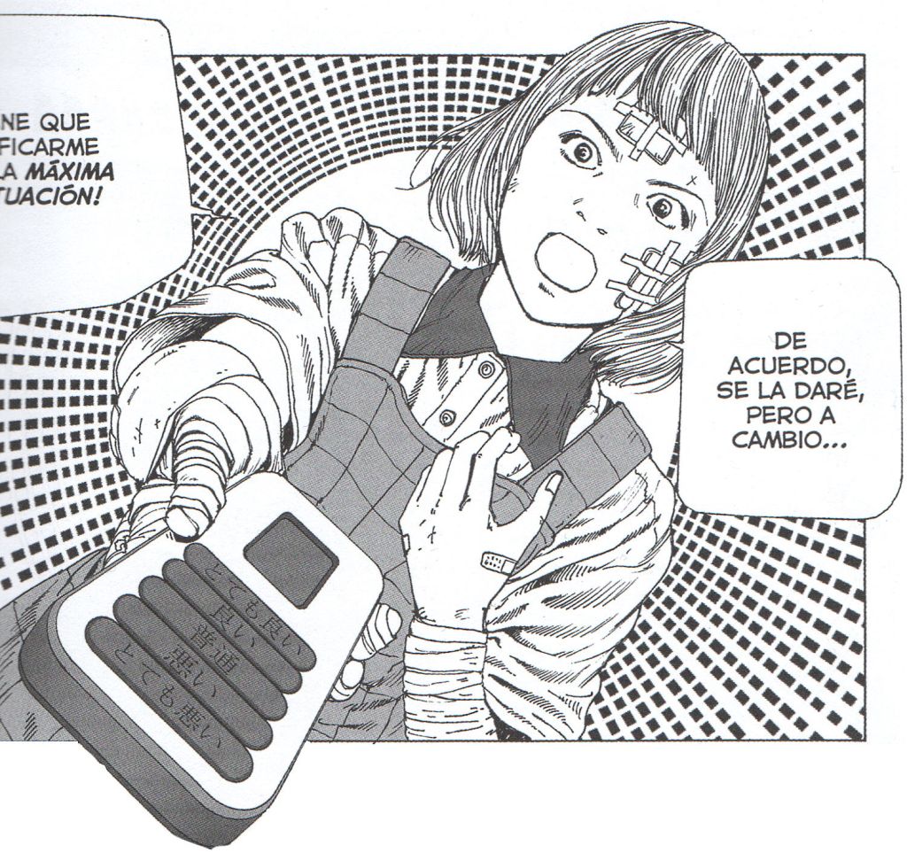 Genial historia también. Se nos presenta el Geriátrico autónomo y autosuficiente Goku-Rakuen formado por módulos individuales que acaban convirtiéndose en torres altísimas por acumulación. Se trata de un auténtico estado independiente gracias a la conexión a Internet: tienen su propio presidente, terroristas, jueces, castigos, etc. Progresivo y divertido delirio que es también una crítica a la proliferación de nacionalismos de todo tipo.