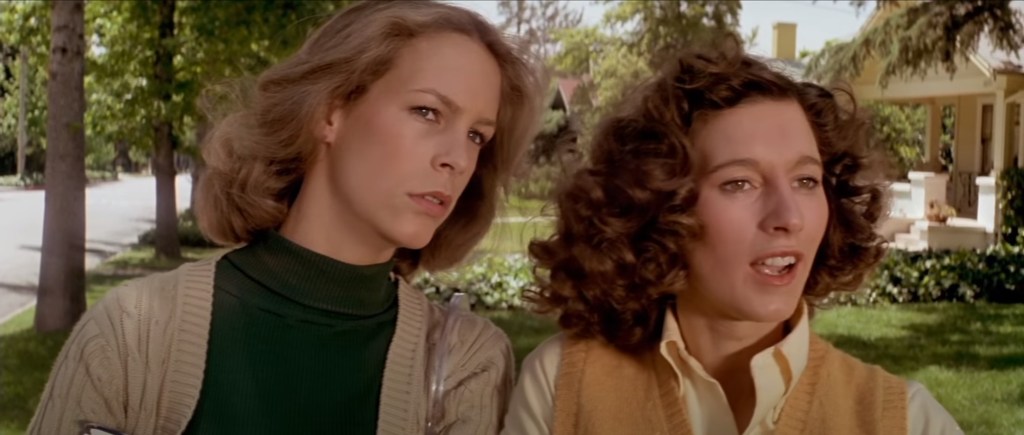 - El ambiente de la película. No es la primera película de terror contextualizada en una festividad, de hecho, ya hemos mencionado antes a Black Christmas (de la que también coge los diálogos y comportamientos tan desinhibidos del grupo de chicas) pero Carpenter se recrea en el ambiente de la festividad e incluso nos muestra sus preparativos. Pero más allá de esto el director sitúa los hechos en una localidad absolutamente normal, donde podría vivir cualquiera, donde todo parece tranquilo y la amenaza es inconcebible. Ya no estamos en un castillo medieval, el terror está en las calles de tu ciudad.