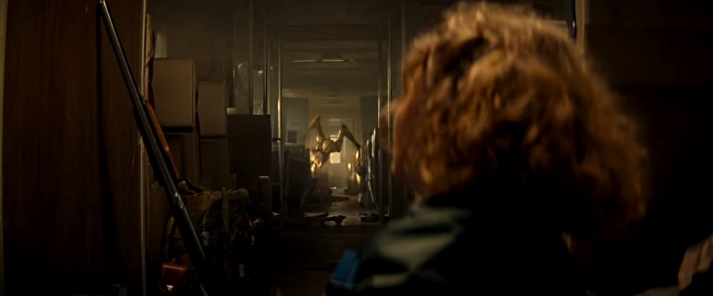 La escena inicial de la segunda película, con los momentos iniciales de la invasión extraterrestre es la parte que más se diferencia de este esquema narrativo (aunque también sirve para introducir al personaje interpretado por Cillian Murphy). Esta escena ofrece los momentos más espectaculares de toda la saga aunque hace que pierda cierto misterio el origen de la amenaza. Llama la atención la naturaleza puramente animal de los extraterrestres que parecen meros depredadores, sin inteligencia alguna. ¿Cómo llegaron entonces a la Tierra? Es una visión de los extraterrestres poco habitual en el cine norteamericano (con la excepción del monstruo de Alien que no tiene capacidad para invadir por si mismo el planeta). Es uno de los puntos flacos del guion que podría explicarse por la intervención de una tercera parte. Por otra parte es un acierto del guion que su mayor virtud acabe siendo también su punto flaco. La saga recuerda a las películas en las que se nos pone en la piel de un personaje con alguna minusvalía visual o auditiva que se enfrenta a una amenaza con teórica superioridad. En este caso esta condición se extiende a los escasos supervivientes humanos que se enfrentan a una amenaza implacable con sentidos superdotados.
